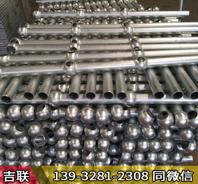 平臺欄桿球型立柱為熱鍍鋅組裝式圍欄,仿佛性能好,經(jīng)濟實用,特別適用于水廠,污水處理廠,電廠,化工廠,石化企業(yè)等腐蝕性較強的場所。當(dāng)安裝空間不足時,固定末端立柱,將扶手欄桿穿過立柱,穿立柱于欄桿管件并將墊塊墊在地板下;繼續(xù)穿立柱,將墊塊墊到后一個立柱下;將前一個立柱移到固定位置;安裝螺栓及找平,必要時加入墊片。